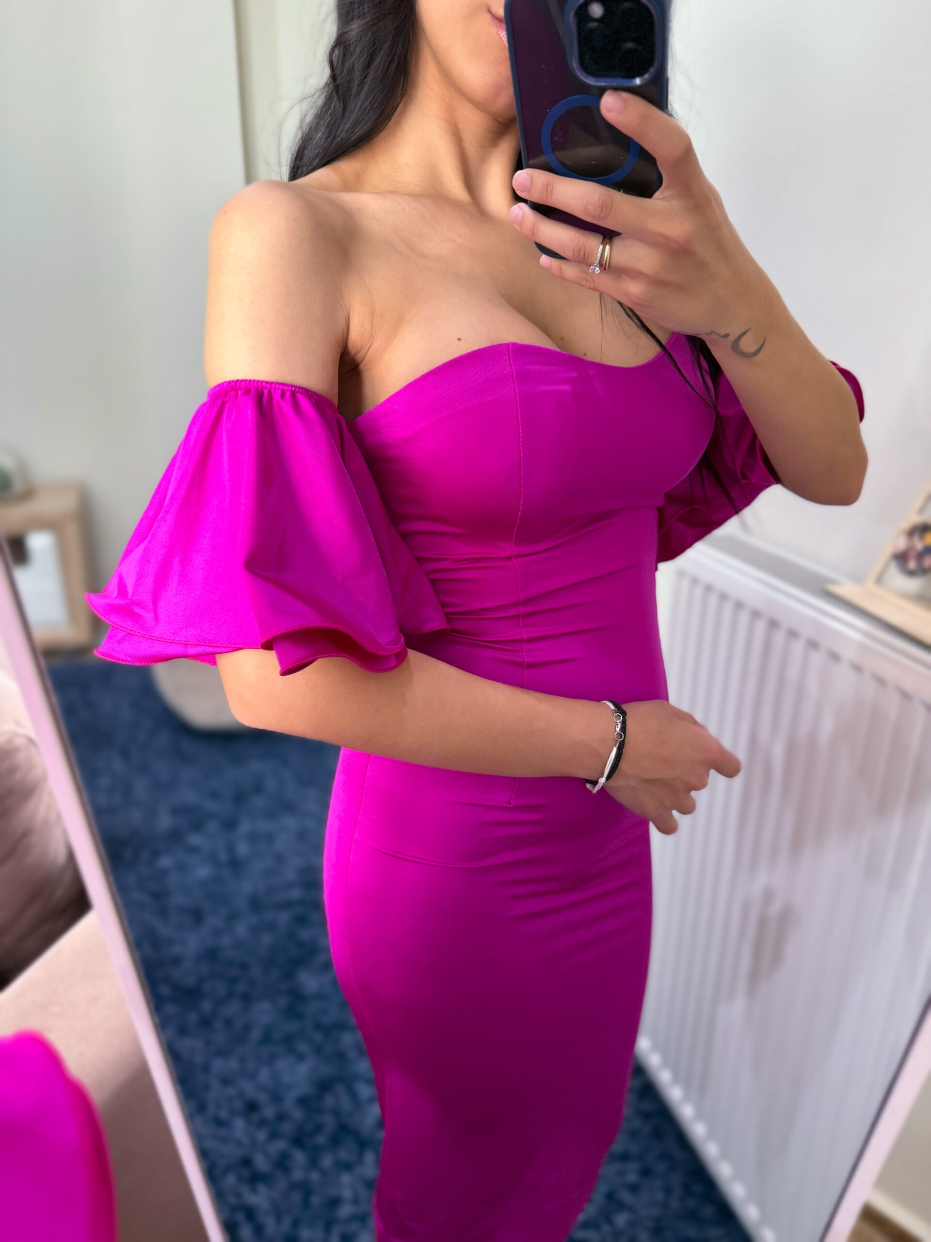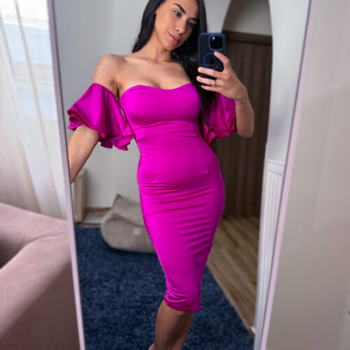 Φόρεμα μίντι με βολάν στα μανίκια|Φούξια