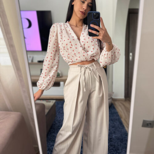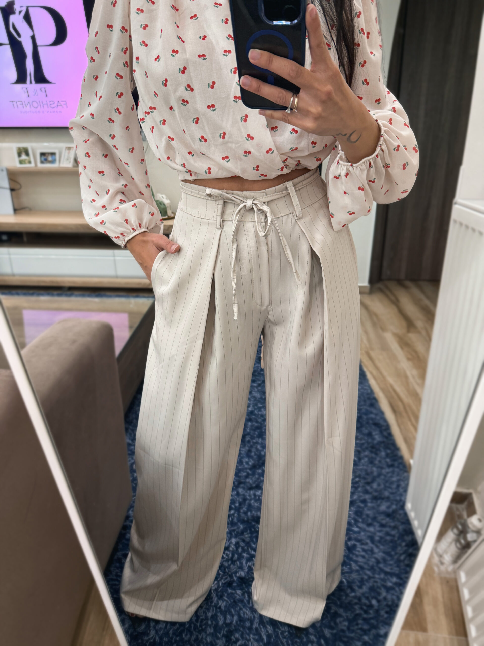 Παντελόνα ψηλόμεση ριγέ|Εκρού