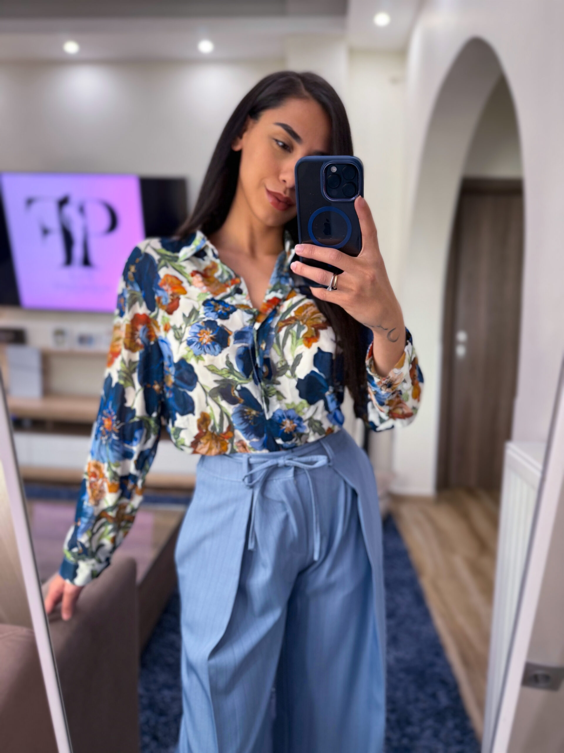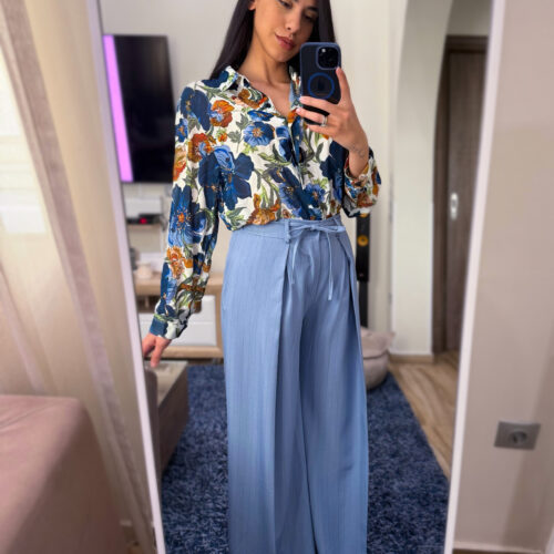 Παντελόνα ψηλόμεση Ριγέ|Γαλάζιο
