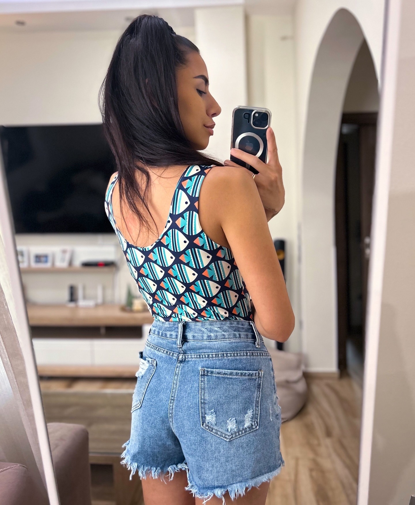 Σορτς ψηλόμεσο με σχέδιο πεταλούδες