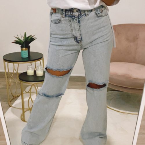 Ψηλόμεσο Ripped Jean ανοιχτόχρωμο