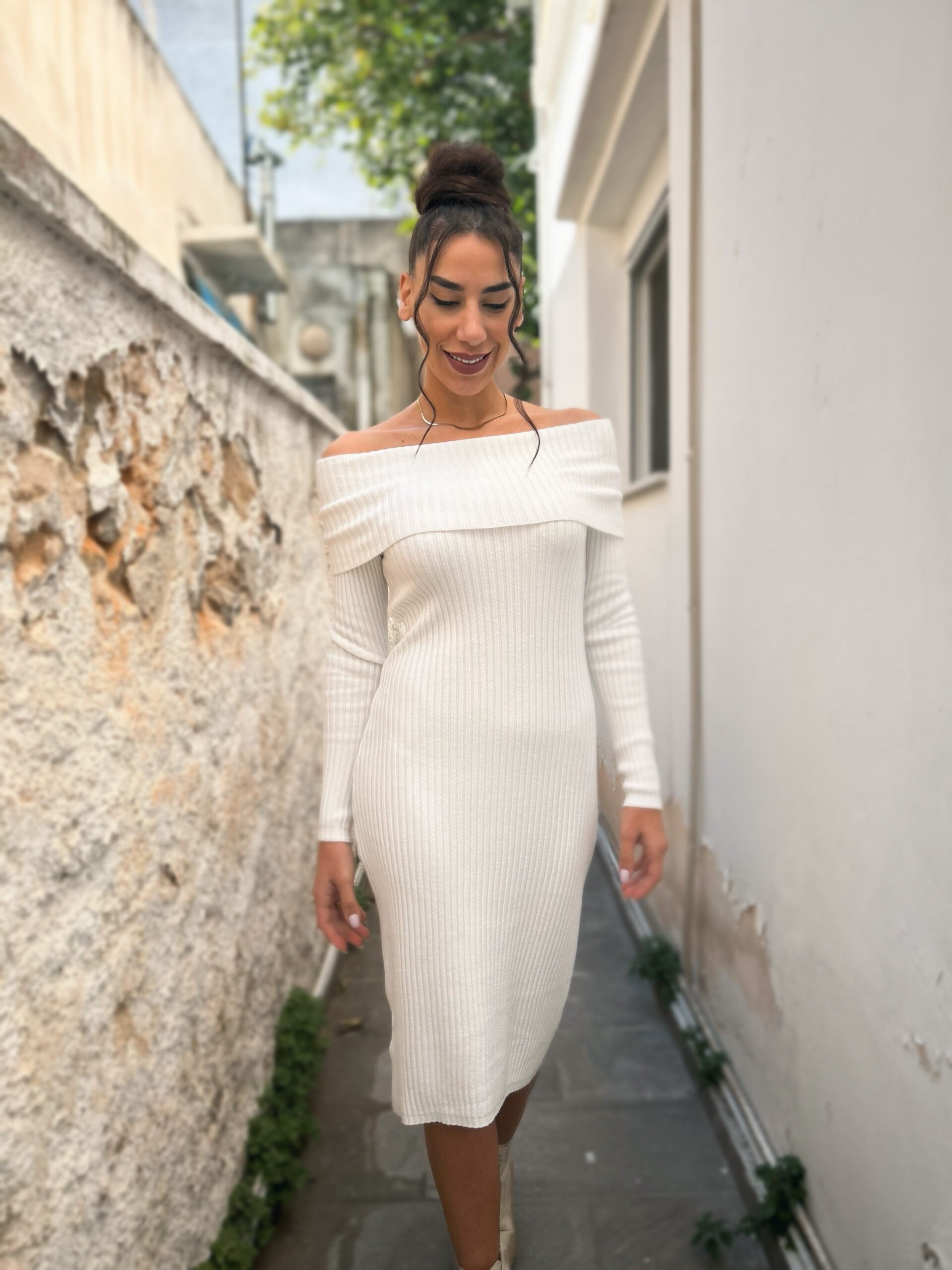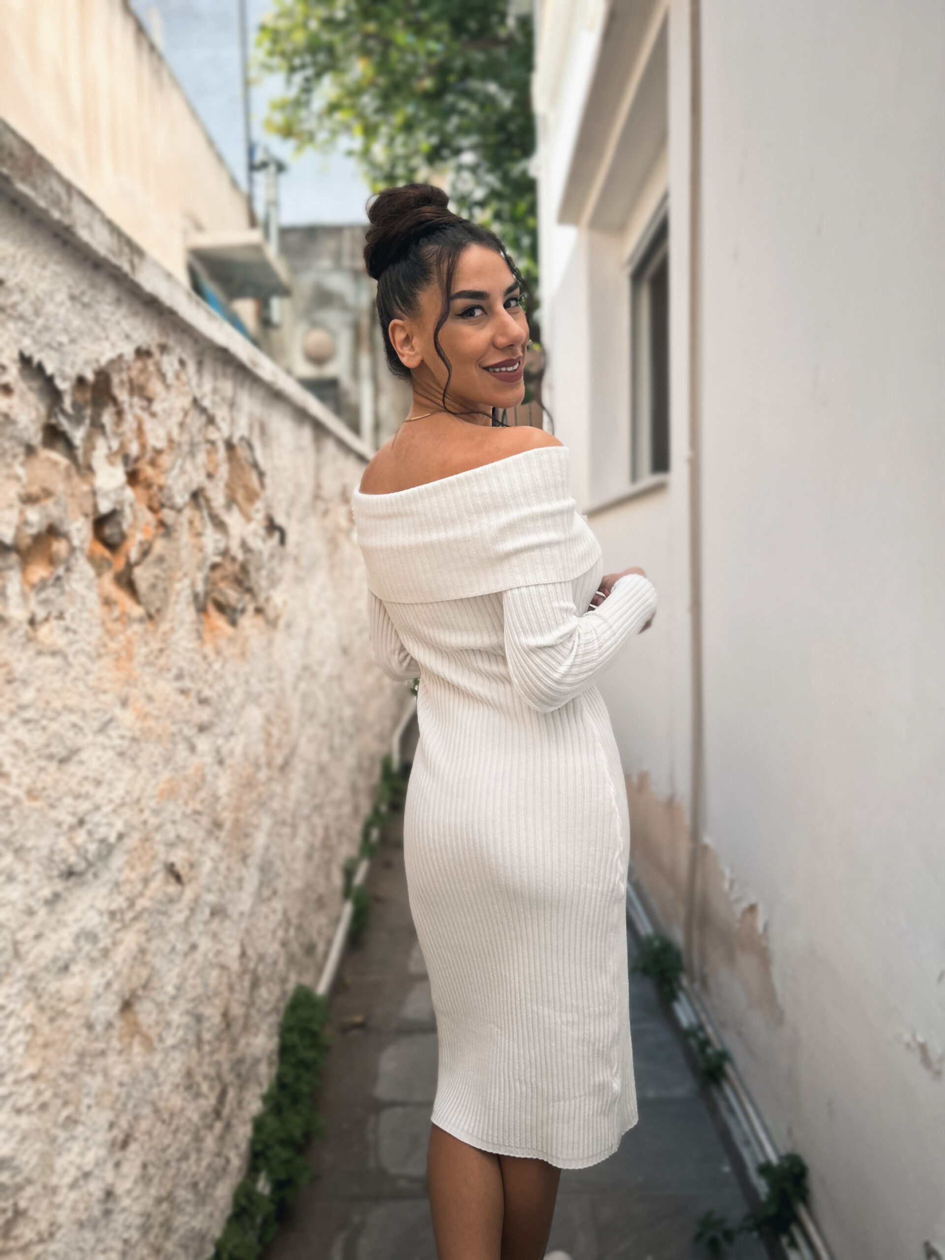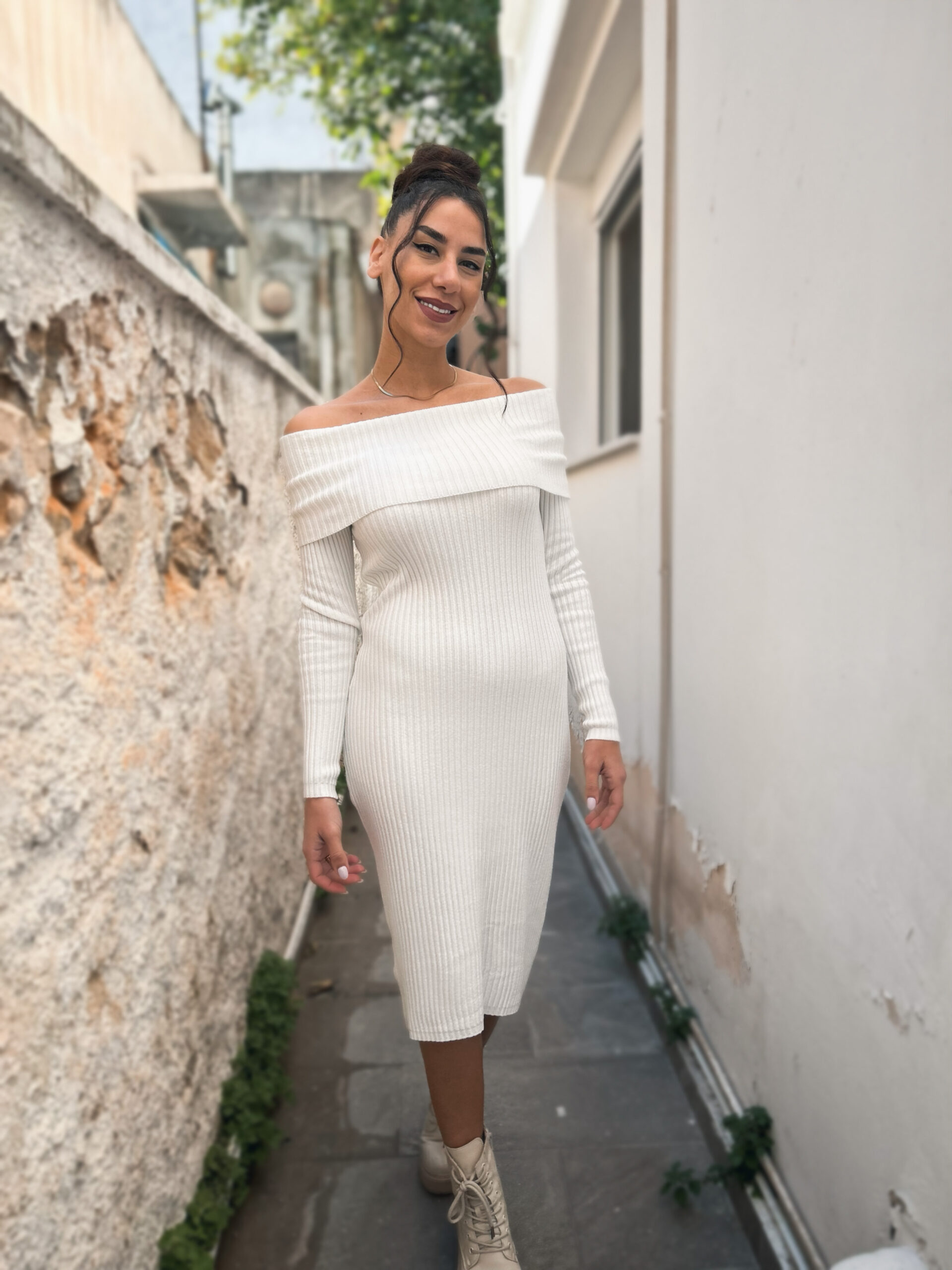 Πλεκτό ριμπ φόρεμα|Λευκό